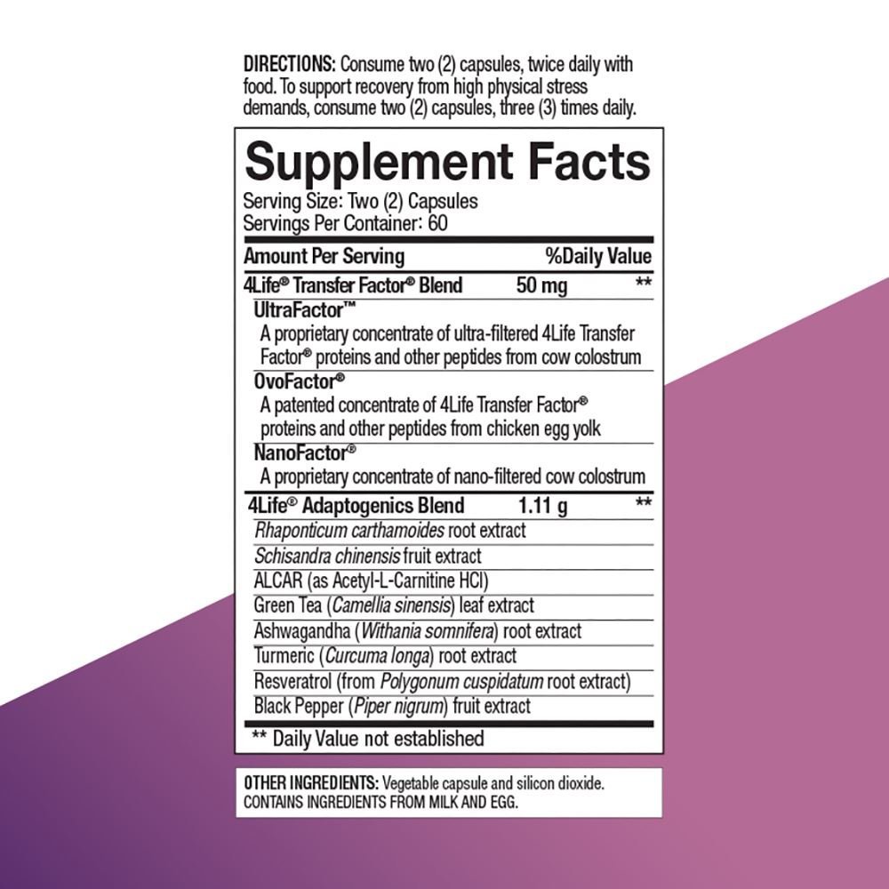 • 4Life Transfer Factor Tri-Factor Formula—contiene moléculas exclusivas para educar al sistema inmunitario que lo ayudan a reconocer las amenazas a la salud, responder ante ellas y recordarlas más eficazmente.*Elaborado en Estados Unidos con ingredientes de buena calidad, provenientes de diferentes partes del mundo.